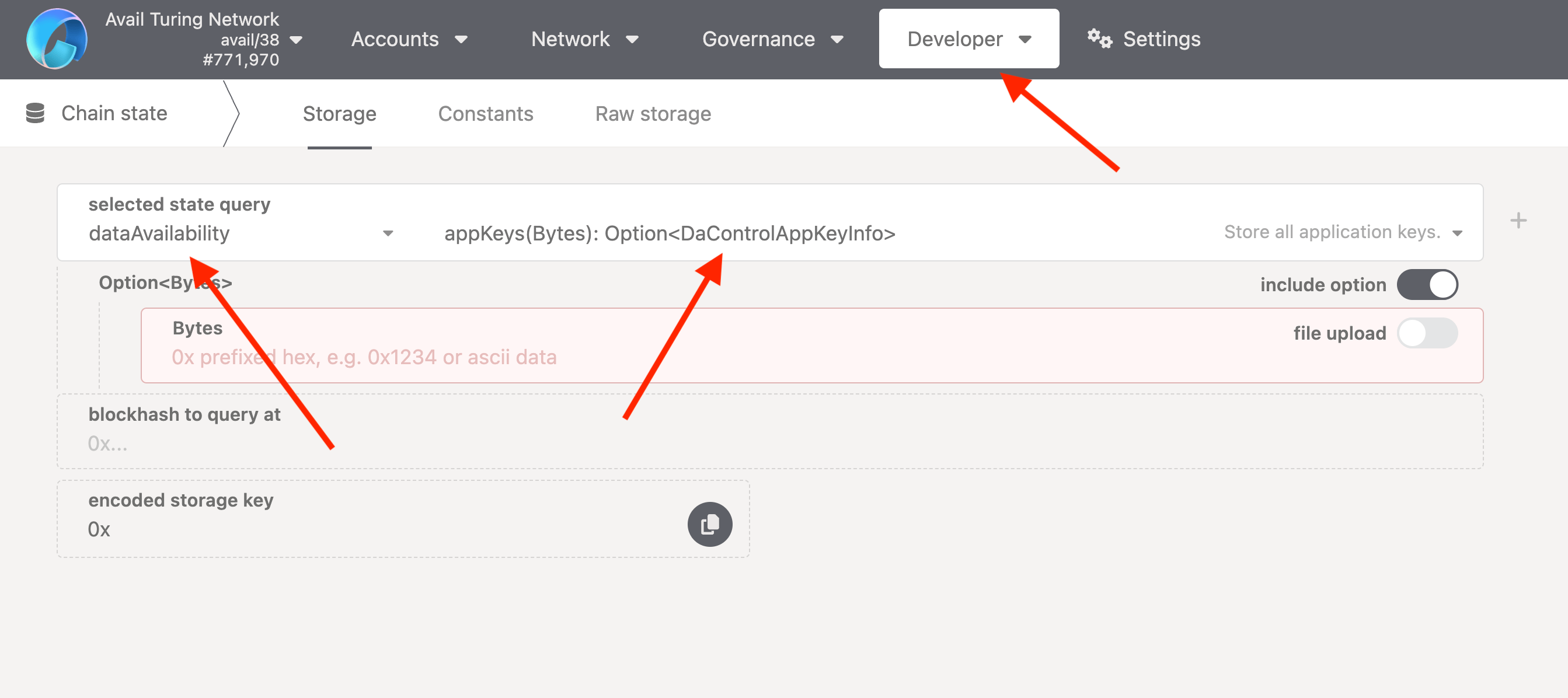 dataAvailabilitypallet and theappKeysmethod.