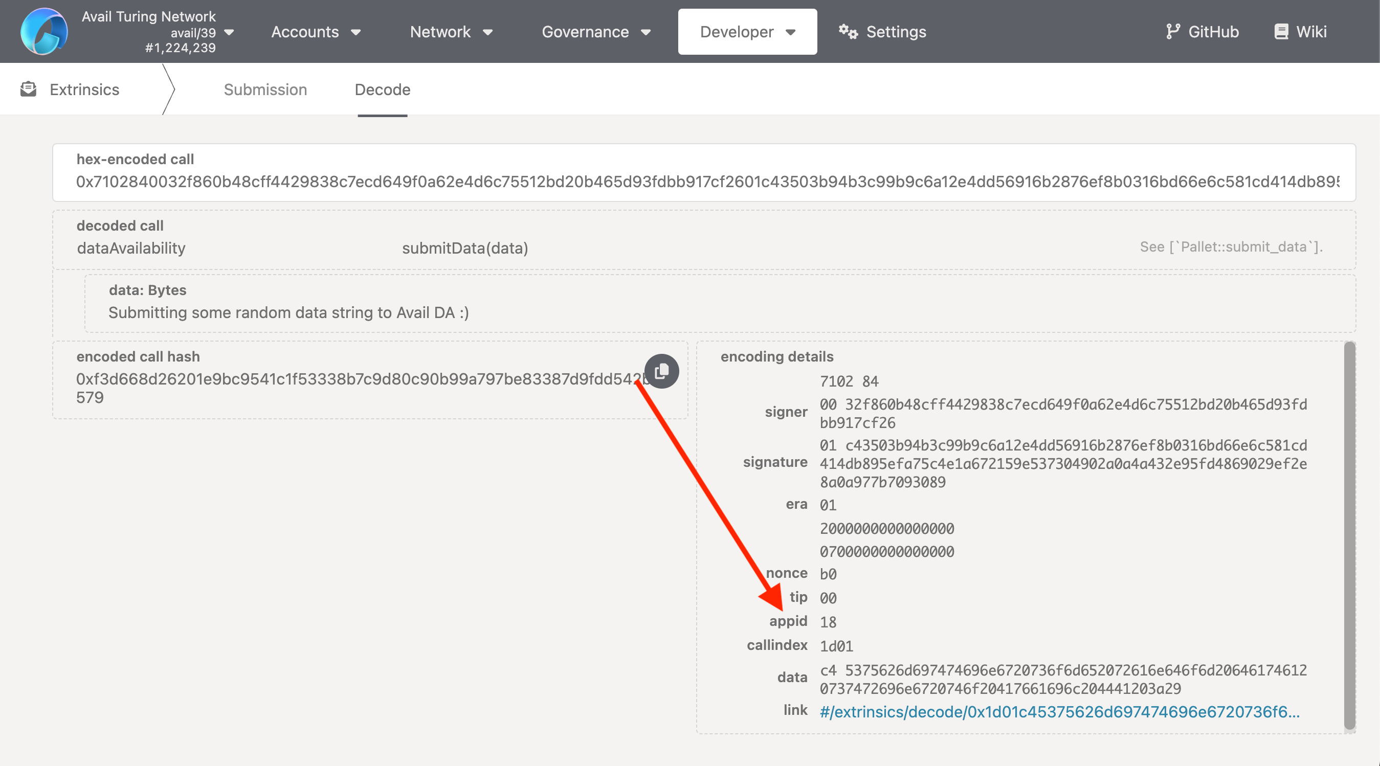 appID, since the act of creating a newappIDhas nothing to do with a specific ‘app’ on Avail DA. - This field would instead have been a positive integer if we, for example, were submitting data to a specific application on Avail DA.