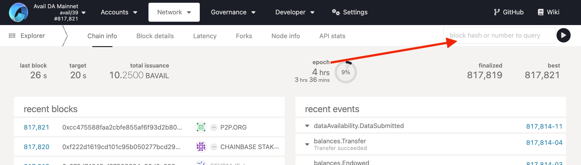 The Avail network has two main explorers that can be used to browse the network: