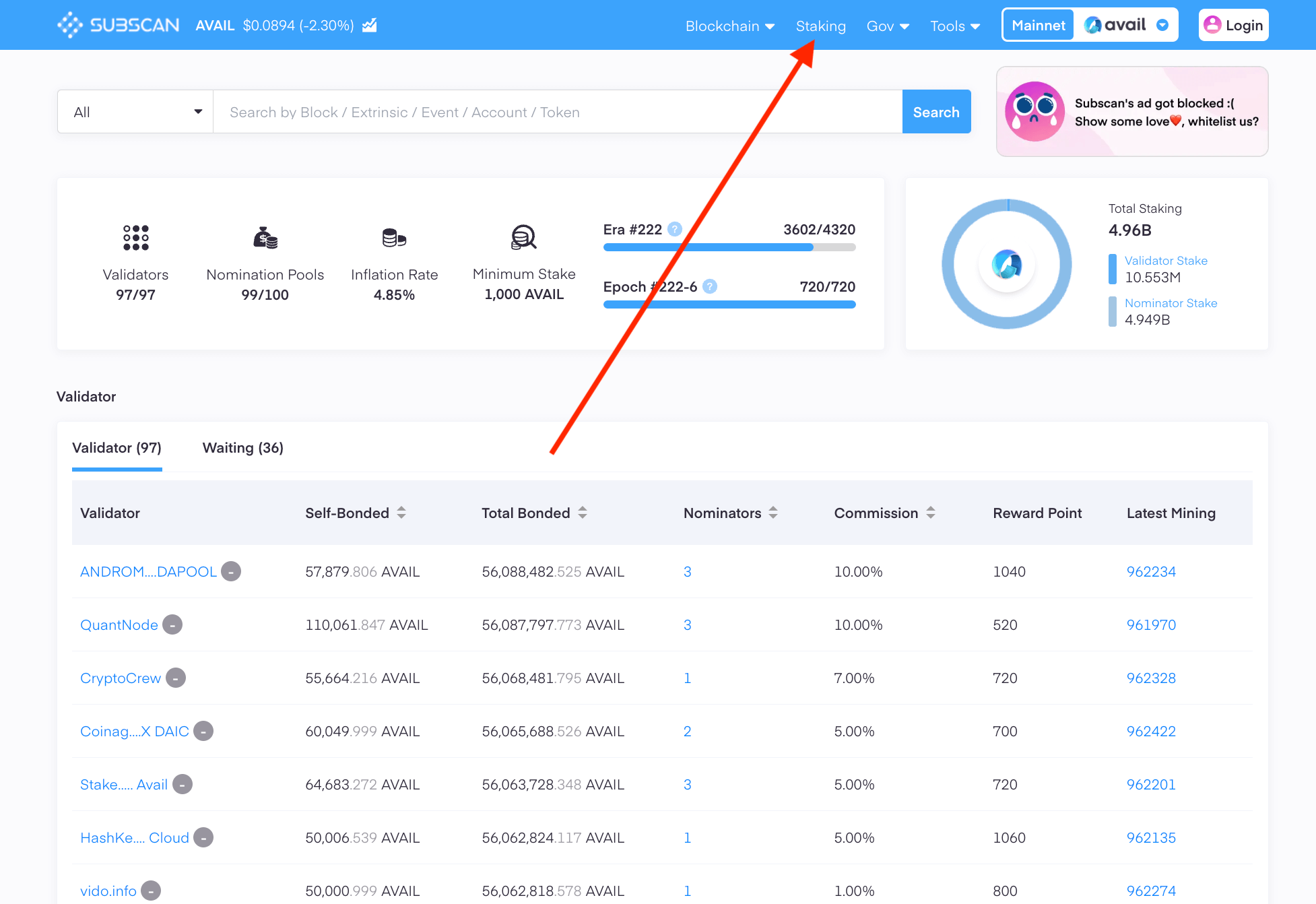 Subscanexplorer however, makes it possible to do so, since it queries from a dedicated indexer built on top of Avail to support this feature.