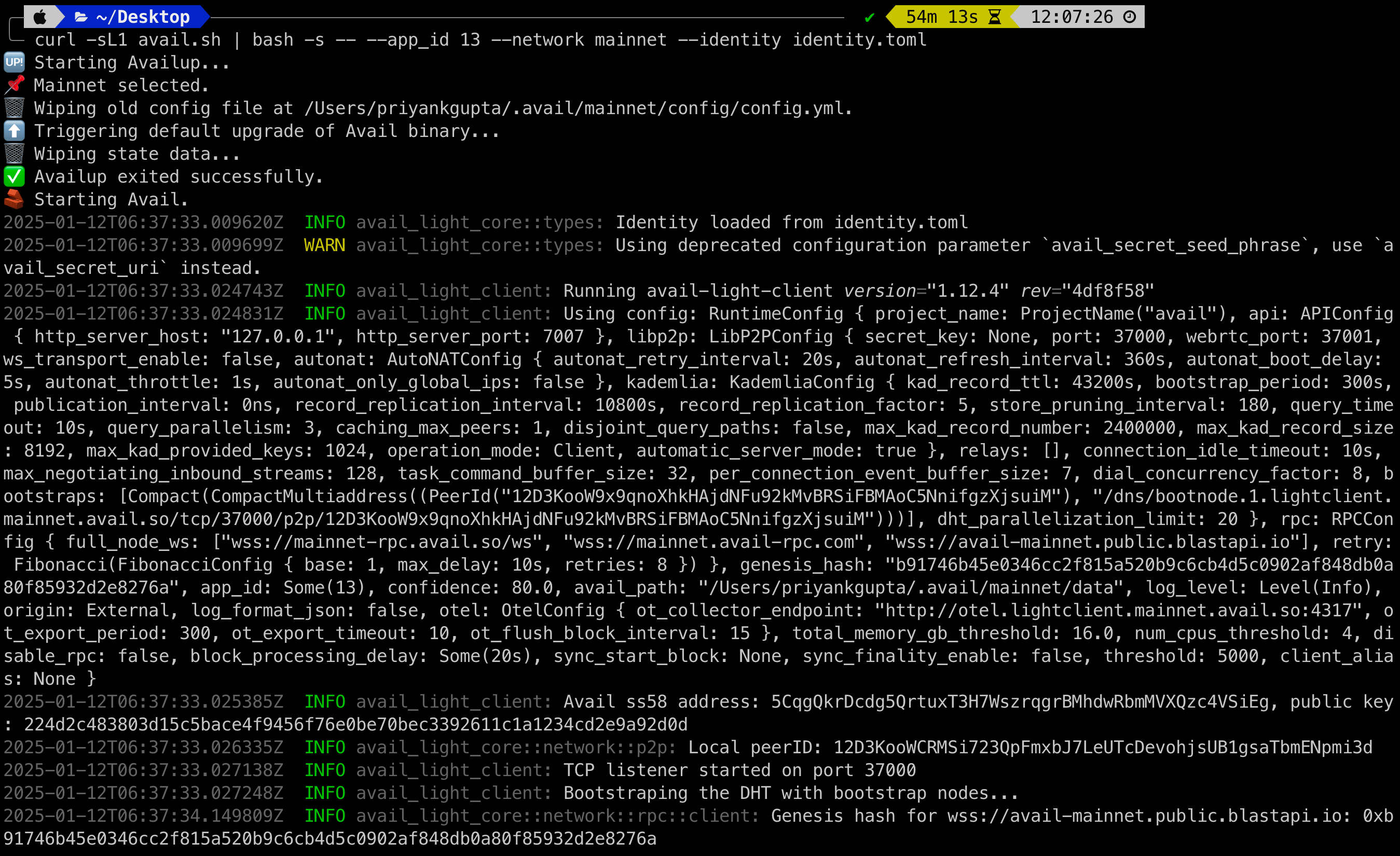 curl -sL1 avail.sh | bash- If everything goes well, the client output will look like this: