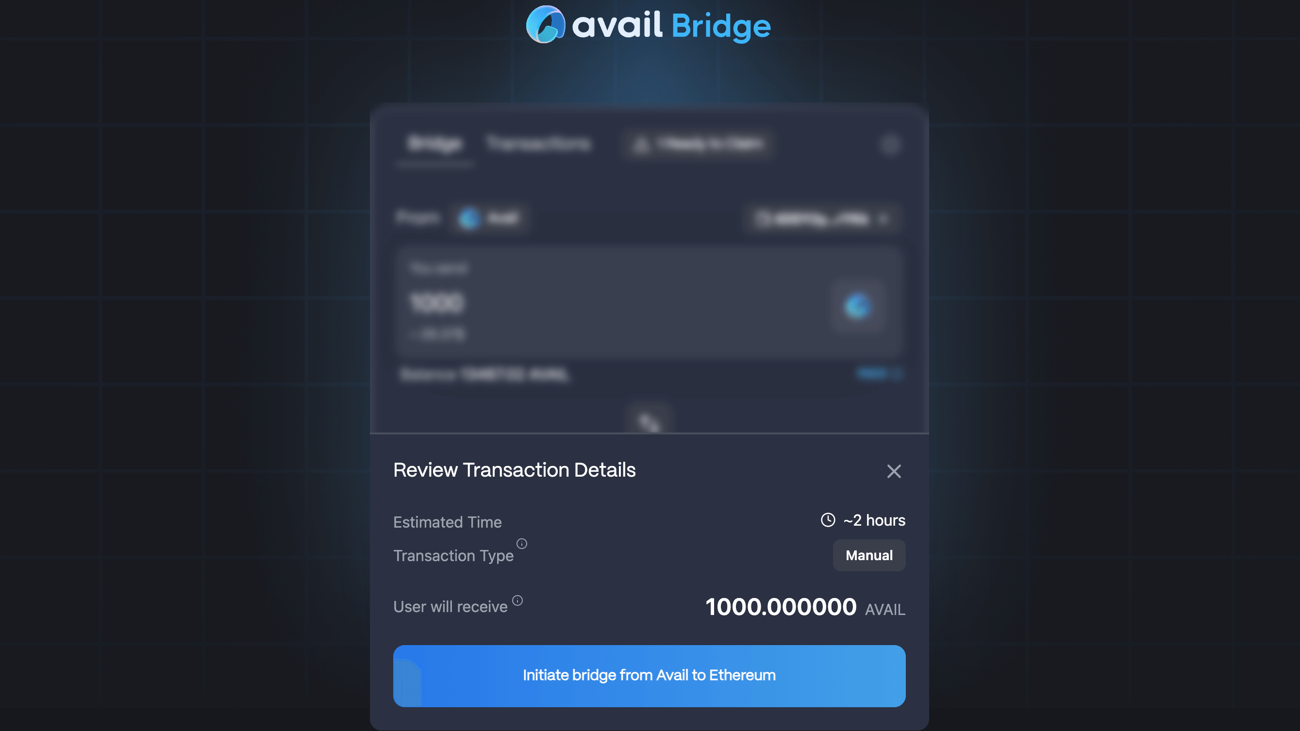Bridging AVAIL from Avail DA to Ethereum typically takes 1-2 hours.