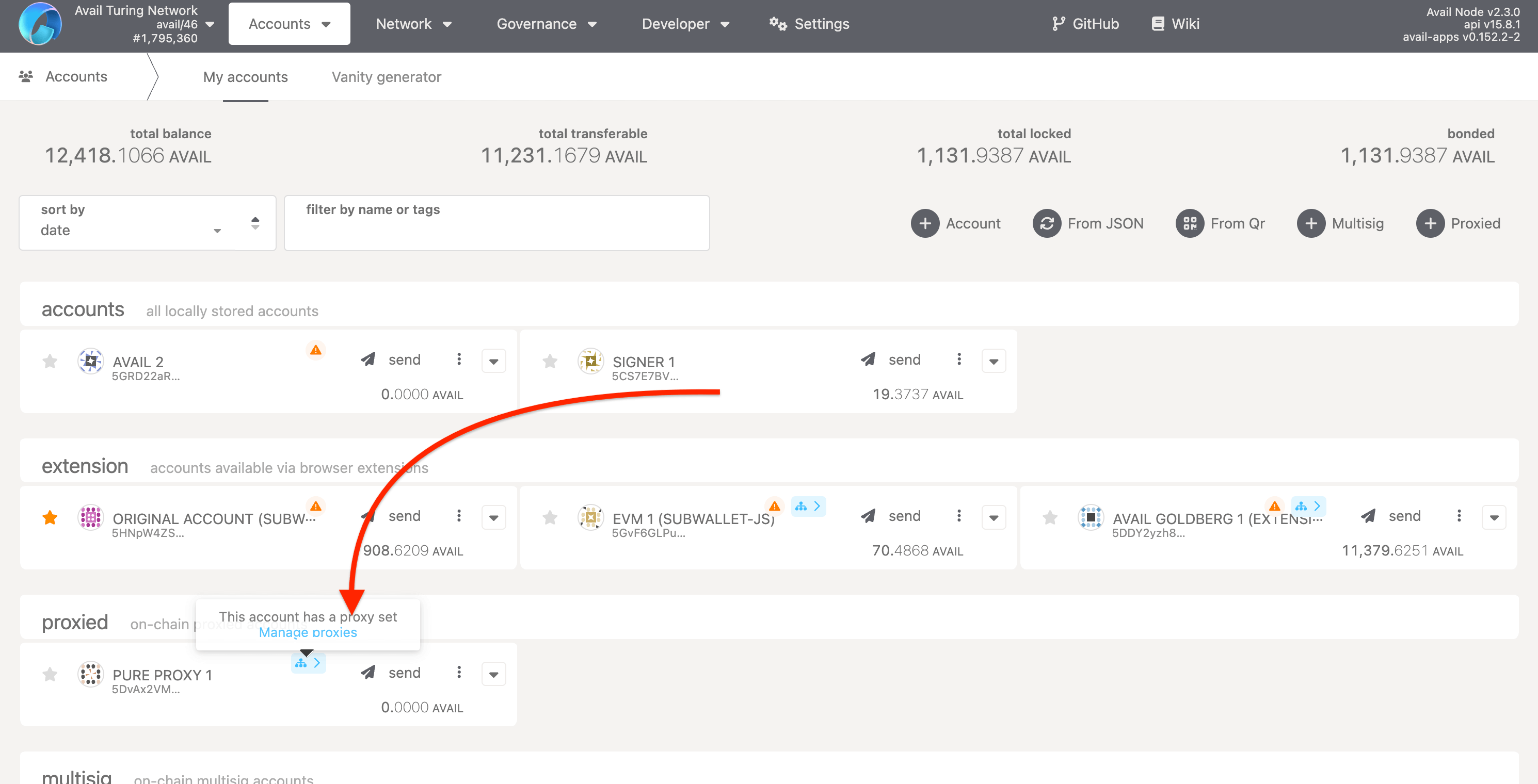 - Once the transaction is successful, you should see that the pure proxy account now has two proxies.